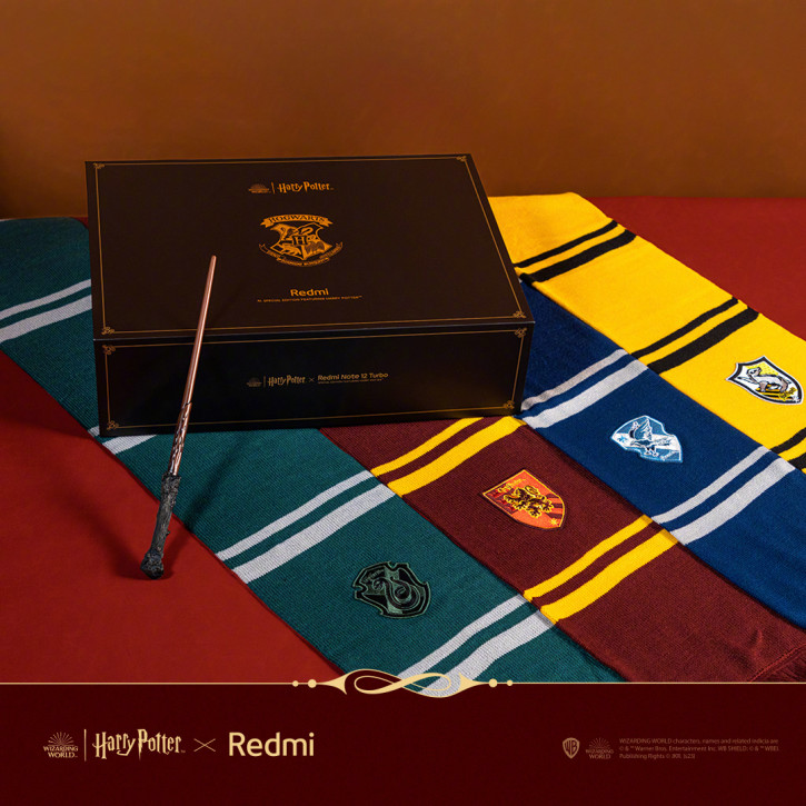 Представители СМИ и многочисленные блогеры уже получили соответствующие пригласительные наборы на презентацию Redmi Note 12 Turbo, в составе которых присутствует множество сувениров из вселенной Гарри Поттера — мантия волшебников, шарфы факультетов, само пригласительное приглашение с гербовой печатью и даже волшебная палочка — куда же без неё.